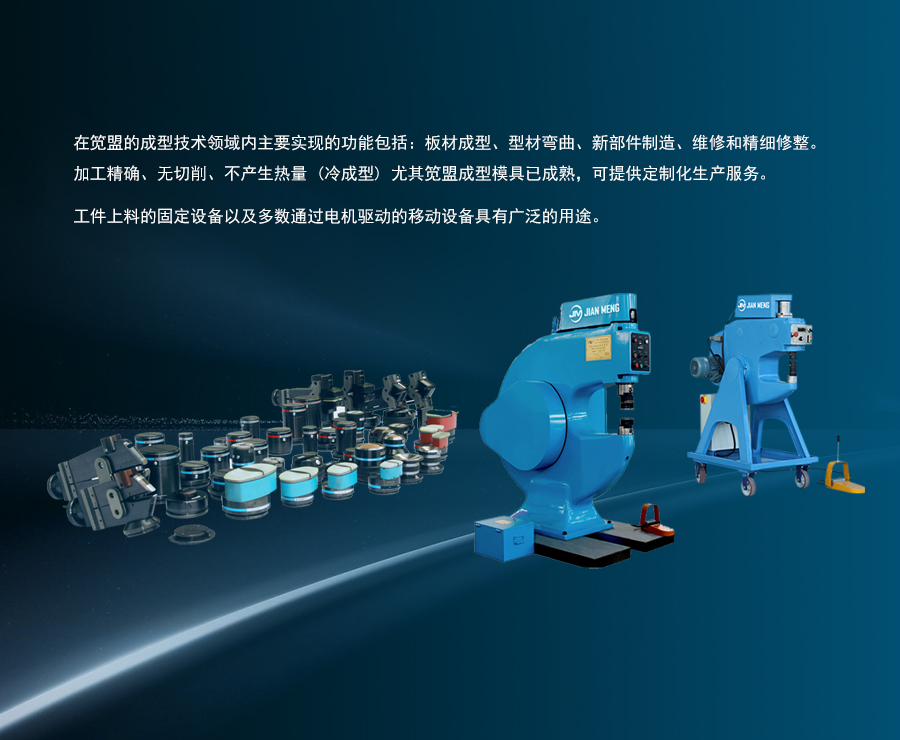 公司主要生產制造:PF350異形曲面快速成形機,PF665雅高成型機,收邊機,放邊機,校形機,鈑金整形機,球面成形機,高速成型機,金屬整平機等設備...